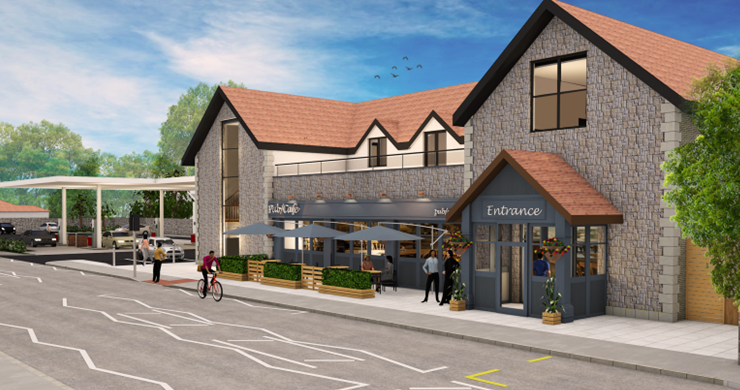 Approved 2020, now built – From pre-app, through a Planning Application and Public Inquiry Appeal to secure permission for the redevelopment of dis-used pub site for PFS, EV charging, retail store, restaurant, salon and offices. issues included Local Listing, Asset of Community Value, bio-diversity and light pollution.
